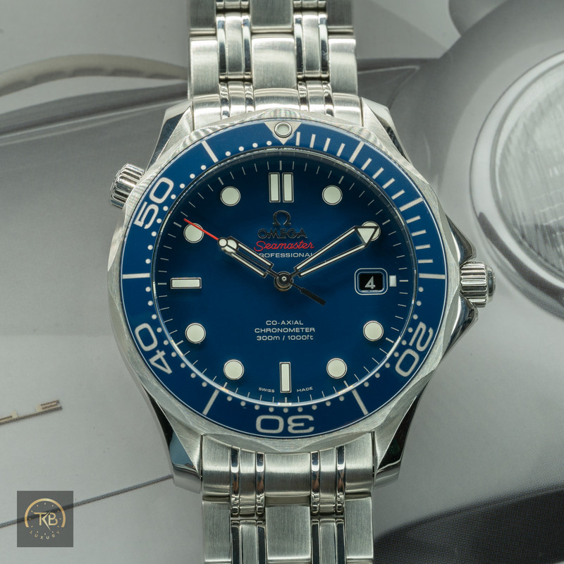 Omega Seamaster Professional 300M – Ref. 212.30.41.20.03.001 (Blue Dial, 41 mm) Box and Papers – 2020 – Very Good Pre-Owned Condition – $3,800 Shipped For sale is the Omega Seamaster Professional 300M (Ref. 212.30.41.20.03.001) — one of Omega’s most recognizable dive watches, blending timeless design with everyday versatility. This 41 mm stainless-steel model features a blue ceramic bezel, sunburst blue dial with applied indices, and skeletonized hands filled with Super-LumiNova for exceptional legibility underwater and in low light. Inside is the Omega Co-Axial Calibre 2500, a chronometer-certified automatic movement offering a 48-hour power reserve and Omega’s signature Co-Axial escapement for long-term stability. The watch is water-resistant to 300 m, features a helium-escape valve, sapphire crystal, and comes on the original stainless-steel bracelet with push-button clasp. This example is in very good pre-owned condition, showing light wear consistent with gentle use. The case and bracelet remain sharp, the bezel and crystal are clean, and the movement runs accurately. Originally sold in 2020, complete with box, papers, and manual. FedEx Express Fully Insured Shipping (Within U.S.) Included. Signature required upon delivery. We are passionate collectors with a trusted reputation in the watch community. Every watch we sell is 100 % authentic, accurately described, and securely shipped with full insurance and tracking. Questions welcome — we reply quickly and always enjoy talking watches.